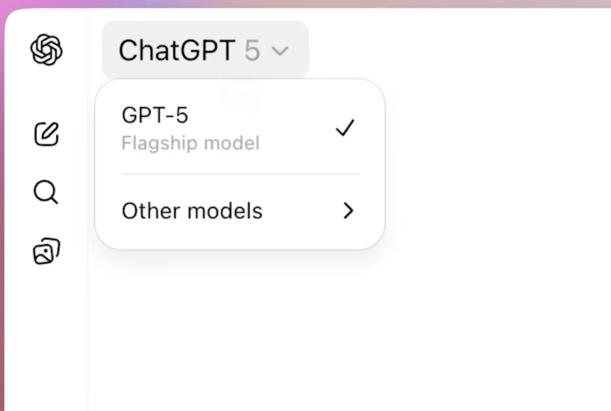 ChatGPT interface showing the GPT-5 flagship model selection dropdown menu